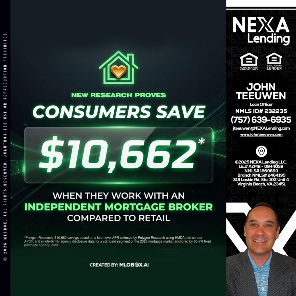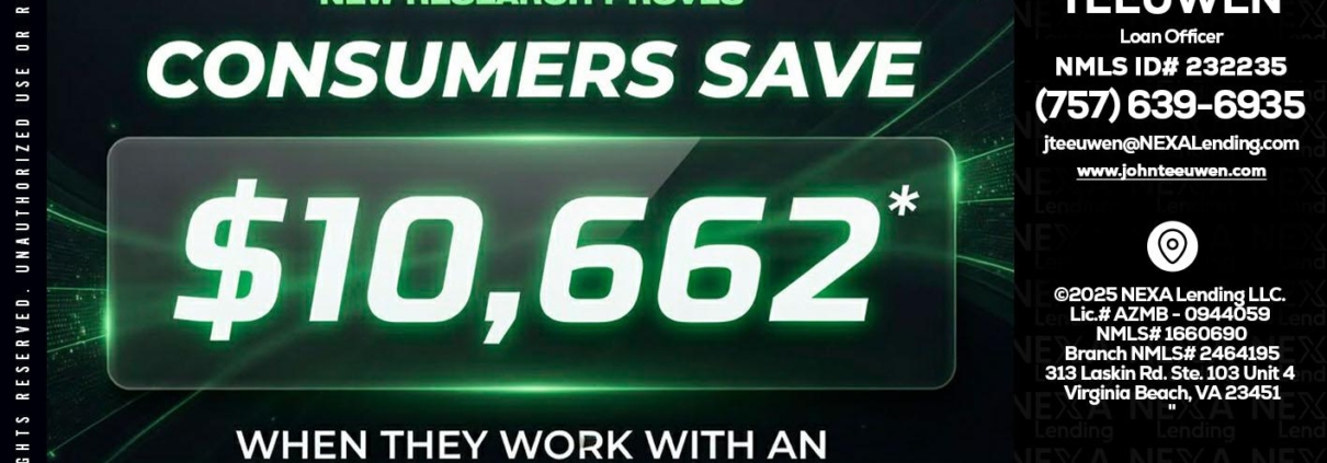 Hi, my name is John Teeuwen. I’m a Loan Officer with NEXA Lending LLC., offering personalized mortgage solutions, fast customized quotes, great rates and service with integrity.