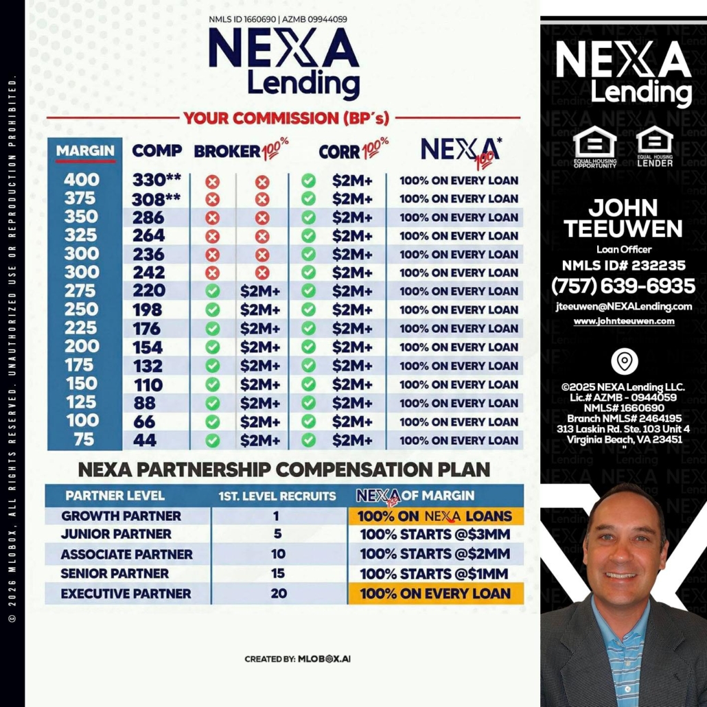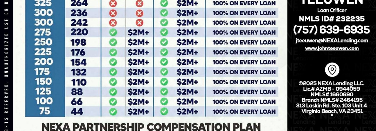 Hi, my name is John Teeuwen. I’m a Loan Officer with NEXA Lending LLC., offering personalized mortgage solutions, fast customized quotes, great rates and service with integrity.