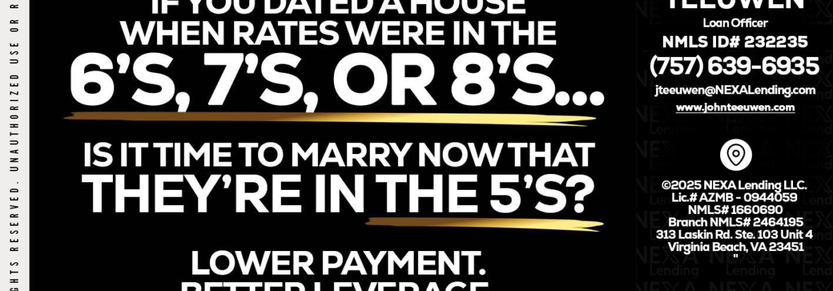Hi, my name is John Teeuwen. I’m a Loan Officer with NEXA Lending LLC., offering personalized mortgage solutions, fast customized quotes, great rates and service with integrity.