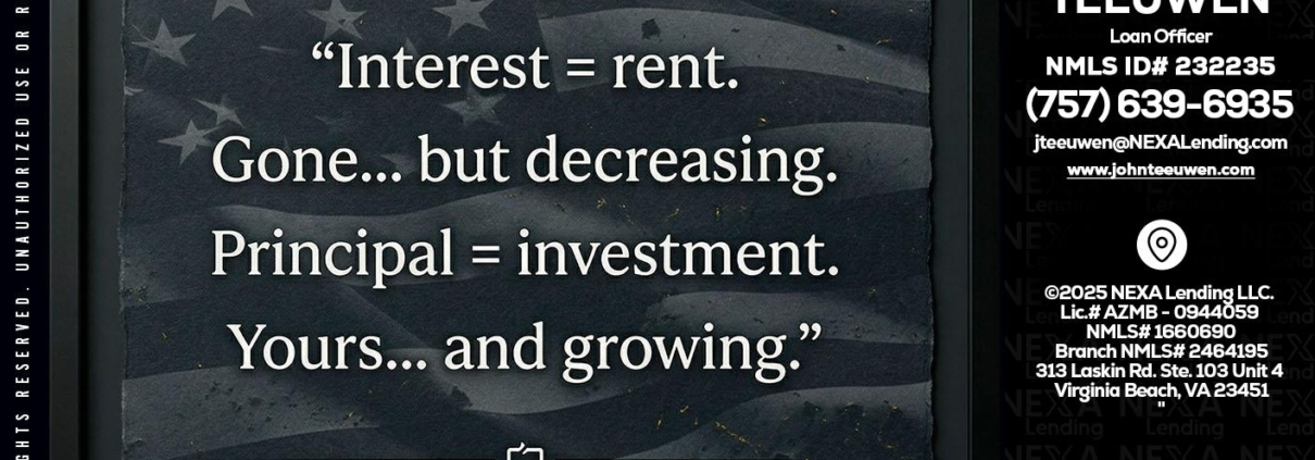 Hi, my name is John Teeuwen. I’m a Loan Officer with NEXA Lending LLC., offering personalized mortgage solutions, fast customized quotes, great rates and service with integrity.