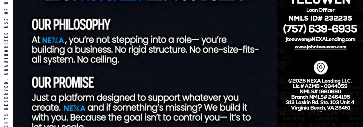 Hi, my name is John Teeuwen. I’m a Loan Officer with NEXA Lending LLC., offering personalized mortgage solutions, fast customized quotes, great rates and service with integrity.