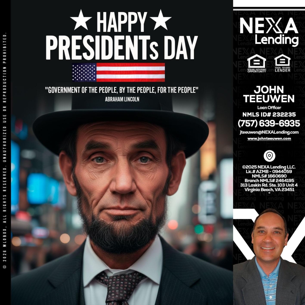 PRESIDENTS DAY - John Teeuwen -Loan OfficerHi, my name is John Teeuwen. I’m a Loan Officer with NEXA Lending LLC., offering personalized mortgage solutions, fast customized quotes, great rates and service with integrity.